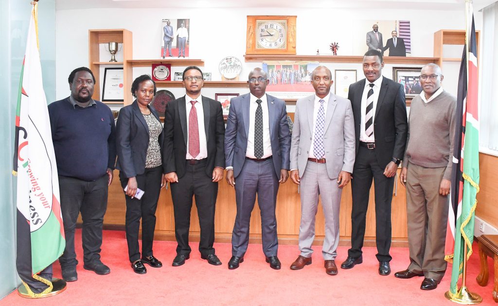 This morning, the Kenya National Chamber of Commerce and Industry team, led by CEO KK Mutai, hosted a delegation from the Kenya Trade Network Agency (KenTrade) led by Manager Trade Facilitation and Value Add services Billy Ngumi for strategic discussions on integrating the Chamber Management Information System (CMIS) with KenTrade’s Single Window Trade Facilitation Platform (TFP).
